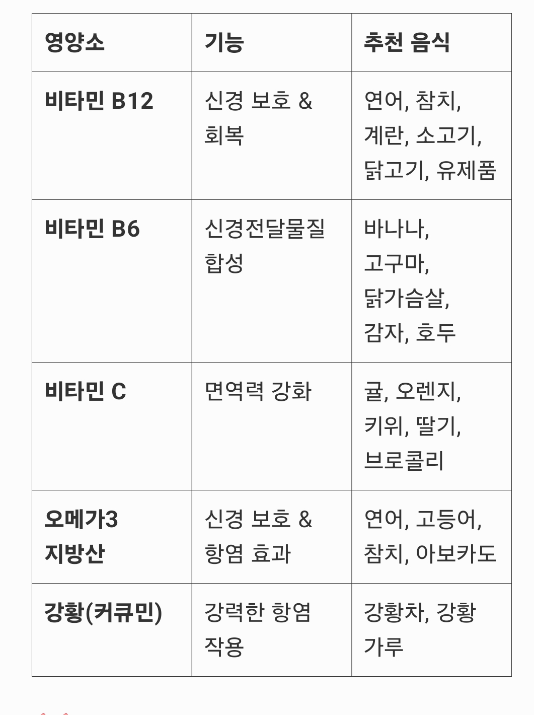 ✅ 벨마비 치료에 좋은 음식 (신경 회복 & 면역력 강화)